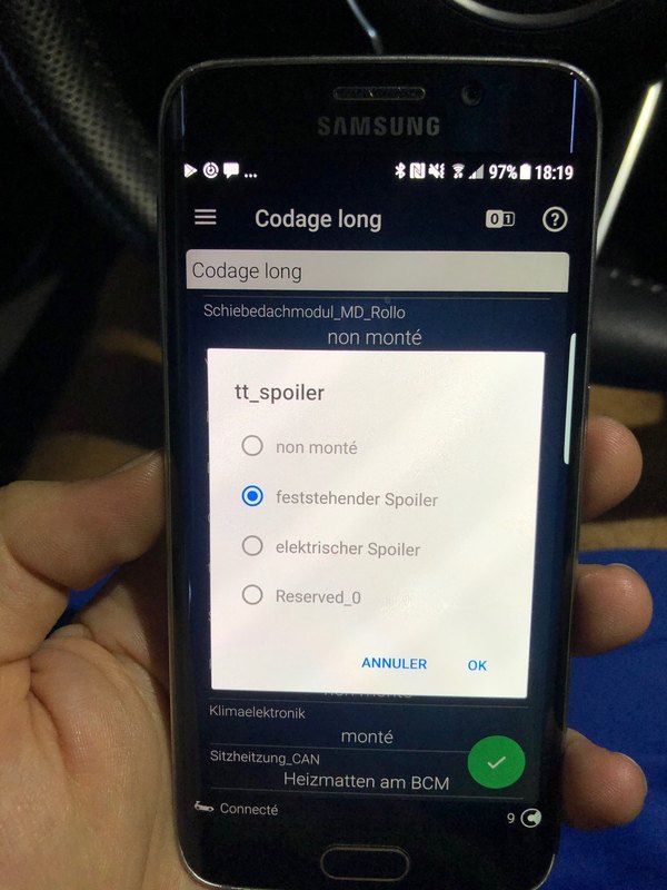 Salut à tous, J'ai une tt mk3 2.0 quattro d'octobre 2014 depuis environ 1 mois maintenant. J'ai constaté que mon clapet d’échappement était tout le temps ouvert quelque soit le mode. J'ai donc acheté obd eleven pour reprogrammer tout ça mais ça ne fonctionne pas ni avec le mode simplifié (qui me met une erreur) ni avec le mode codage long, il m'indique un code erreur 31 (fonction not working) J'achète un câble (chinois) une version 18.9 avec codage dual K (je n'ai aucune idée de ce que ça signifie mais ça a l'air cool) de la j'active la reco des panneaux, l'allumage du 3eme feux stop en permanence (donc j'arrive a rentrer dans tous les réglages que je veux et faire des modifs sans souci). Je retourne dans le codage du calculateur moteur le bite "flap exhaust installed" n'est pas coché, je le coche et je me reprends une erreur 31 (request out of range). Impossible de modifier la valeur, je passe sous la voiture, je vais voir si mon clapet n'est pas débranché et non. J'ai supposé à un fusible de grillé mais ça m'étonnerait qu'il y ai un fusible que pour ça. N'ayant pas le diagramme des fusibles je ne suis pas allé plus loin. J'ai absolument besoin de remettre en service ce clapet car je change d'échappement à la fin du mois en utilisant le clapet d'origine. Quelqu'un a une idée ? :) Merci d'avance -