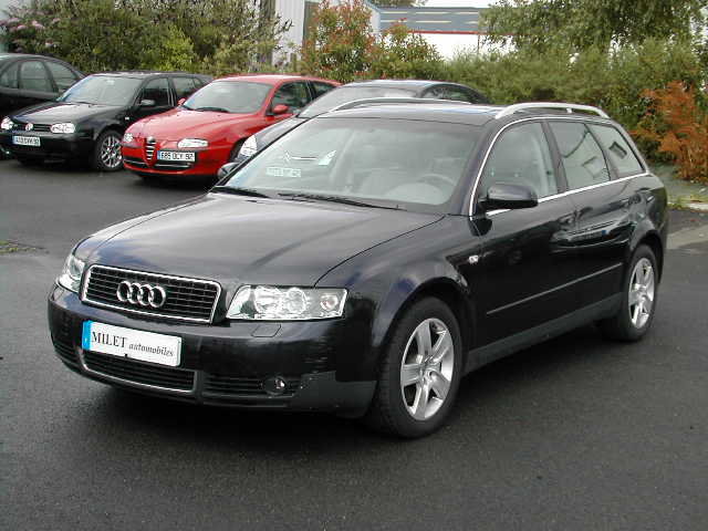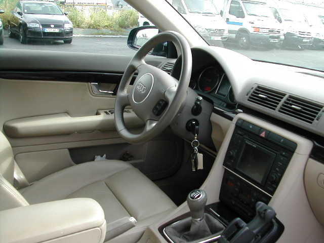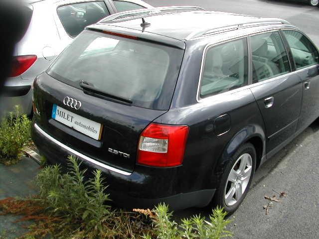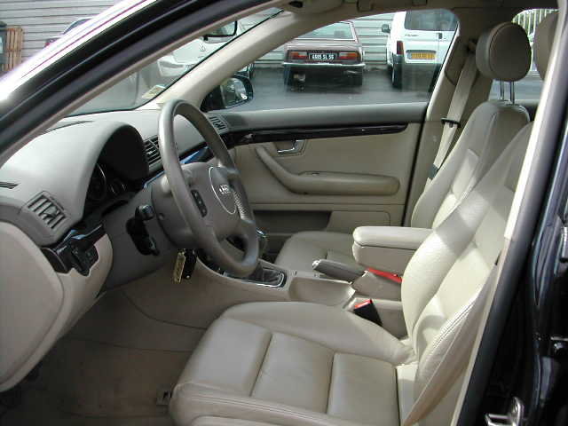 Bon.. Ayé.. J'ai réservé la voiture.. C parti.. !!!!! Je me lance donc pour une A4 Avant 2.5 TDI 155CV Mars 2002 88 000 km Pack + Extérieur Bleu ming (visiblement), intérieur Beige. Jantes 5 Branches GPS / TV, Toit ouvrant electrique, Préparation téléphone. BVM6 Garantie 6 Mois Le tout pour 20 000 Euros Clés en main. Voici les photos envoyées par le revendeur (soyez indulgents, elle n'a pas encore été préparée et n'est donc pas tout à fait propre)