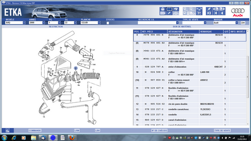 14. Salut YANNCIKA6 oui bien sur dit moi ce qu il te faut je regarde Etka C'est le logiciel que dispose audi pour la recherche de reference de pieces avec reference et prix Cordialement Michel