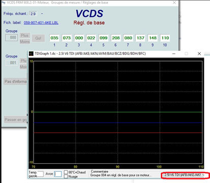 Suite... 1) j'ai rempli le reservoir à + de 3/4 Elle a demarré sans souci 2) connection au graph rien, nada, c'est plat de chez plat... avec le choix d'une autre motorisation pourtant Les courbes apparraissent, mais pas vec la sélection du 2.5l ake... Je remarque que le voyant "prechauffage bougie" clignote au tdb durant le test je sors du calculateur moteur, déconnecte à la prise odb == 0 erreur pour le moment ----- ===> La voiture tourne depuis 20 MINUTES au ralenti: RAS ====> Montés dans les tours: RAS J'ai mis la clim: direct, ====>erreur 550 Je remarque que tant que je suis sur le calculateur, le moteur ronronne bien J'ai fait un tour questoin de faire le plein, sans clim: idem 550, et ça fume, ça fume... 1*) AVEC LE PLEIN/si la pompe de transfert, n'a pas de vocation à pousser le carburant vers la PI, le problème ne proviendrait pas de là, non? 2*) Je ferai un test du bidon supendu si pb , mais elle demarre super bien et pas désamorcé 3*) Je penche un bleme d'avance; et pas moyen de lire graph pour 2.5l AKE, vraiment pas de bol. existe il une autre astuce pour inspecter l'avance? ou d'intégrer le fichier informatique 2.5l ake à vcds...