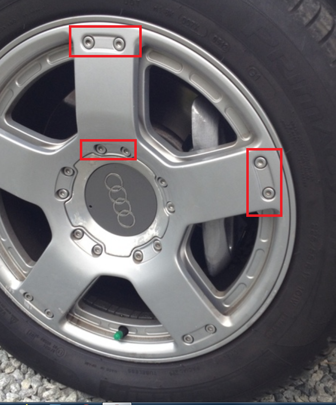vis dans nettoyant poncages 80-120-340-600 1 bombe appret = 2 jantes 1 bombe peinture audi l1h7 = 2 jantes = 15€ 1 bombe vernis brillant= 2 jantes= 6€ 1 enjoliveur neuf sur la baie 30€ port compris (Lituanie) mise en place des vis (hyper costaudes) il ne me reste plus que 2 jantes AR à faire -