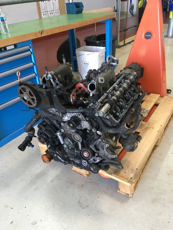 salut Car-marade ! merci ! du partage de vos expériences .... j ai hâte de sortir la voiture pour commencer le taf et je prendrais de l eau ! a la place si je doit en ch... . voila l" engine" récupérer ce week-end . d une A4 , 184524 km ,sans démarreur, ni alternateur , jauge cassé , collecteur droit cassé , distri faite en 2016 a 151...km mais bon elle va etre changer ... si et il y avait une boite mécanique accoupler dessus et je vais voir au démontage... ... d'un recycleur de véhicule avec garantie 3 mois ....mais bon. image! je verrais bien pour le passage en boite auto, j ai survoler des sujets et voir et comprendre si je dois changer de pompe d'injection et voire si je monte le deuxieme turbo ... et les travaux de remise en état du reste bva ,fluide ,les pneu carré , les toile d araignée , et coin a sourie ... et les pièces que j ai depuis... hou la..!!! voila !!! -