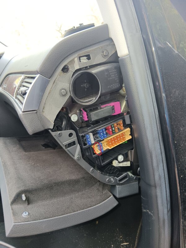 Bonjour à tous, Heureux possesseur d'une allroad 2,5 TDI 2003, j'ai un petit problème depuis deux jours : Je précise tout de suite que je vérifie régulièrement mon bac à batterie, il n'est pas bouché. Suite à de très grosses pluies en région Brestoise, mon low range déconne. Hier, il clignotait en continu, la boite restant au point mort, avec le bruit du moteur électrique qui tourne dans le vide. Aujourd'hui, au démarrage, un clignotement du low range, puis plus rien et la voiture fonctionne correctement (le low range passe normalement en appuyant sur le bouton). Même chose après plusieurs démarrages dans la journée. Lorsque je roule, tout se passe bien sauf en cas de virage serré à gauche. Dans ce cas, la voiture débraye une fraction de seconde et le low range clignote. Il faut alors débrayer et il cesse de clignoter et tout revient à la normale. Je soupçonne de l'eau se baladant je ne sais où et faisant un faux contact lors de ces virages. J'ai essayé de regarder sous le siège passager pour trouver le boitier de low range mais je ne vois pas du tout comment démonter tout cela. J'aimerais le faire rapidement car j'ai peur que de l'eau coincée quelque part n'oxyde des contacts ou pire... Est ce que quelqu'un pourrait m'expliquer comment accéder à ce fameux boitier ou alors aurait une idée de l'origine du problème ? Merci d'avance pour votre aide. Jean.