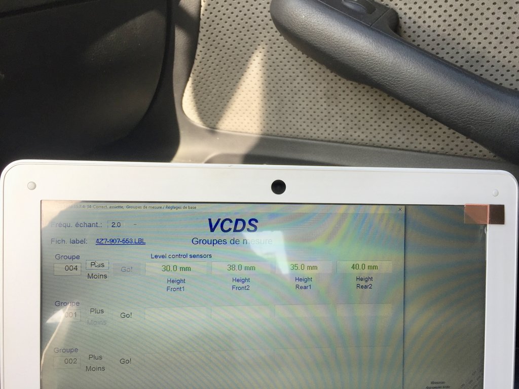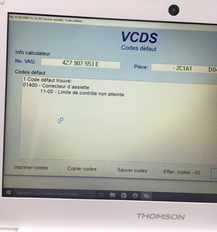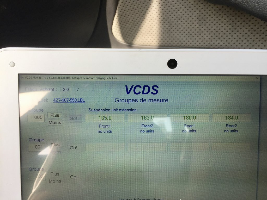 Pour ce qui est de l'ABS et ESP oui . Maintenant j'ai toujours un problème sur la suspension . J'arrive a la mettre en position 2 , mais pas 3... le compresseur tourne et au bout d'un certain temps j'ai le voyant allumé au tdb . Au diag ça donne ça : -