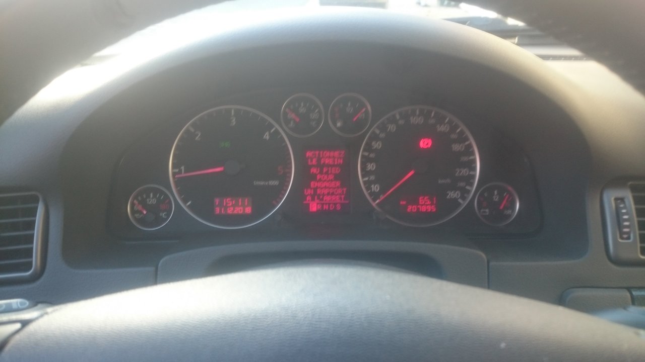 Bonjour, Bonsoir bonne fête de fin d'année à tous !!! Aujourd'hui présentation de mon nouveau sac à dos acheter en février 2018. C'est une Audi a6 c5 break phases 2 de 2003,origine Allemagne, 2/3 ème mains Carnet, facture, ct ok Moteur: 2,5 V6 TDI 180 CH/24 Soupapes, Quattro avec boîte Tiptronic 5 vitesses Finition: DEUTSCHE PACK PLUS (vu les équipements et options) Valeur Neuve avec Options: Facile 360 776 Francs OU 55 000 Euros . Équipements et options (c'est la que sa va être bon ) : Extérieur : - Phares Xénon (+ Option). - Barres de toit. - Toit ouvrant Electrique (+ Option). - Jantes aluminium 17 en étoiles plus roue de secoure. - Attelage (+ Option) remorque Westefalia démontage rapide. - Châssis rabaisser Sport. (+ Option). Intérieur et confort : - Boite (+ Option) Automatique Tiptronic 5 vitesses avec mode S et manuel. - Autoradio (+ Options) GPS RNSE Navigation plus MMI, radio, GPS,entrée carte Sd x 2 et chargeur 6 CD. - Ordinateur de bord avec (+ Option) Horloge Radio pilotée. - Volant multifonctions en cuir avec Airbags, commende au volant (+ Option) Volant chauffant !!! et Palettes tiptronic au volant. - Intérieur (+Options) Cuir/Alcantara et Plaquage Alu/Carbone : Sièges sport Cuir/Alcantara électrique avant (assise et lombaire) chauffants et Airbags. Banquette arrière Cuir/Alcantara chauffantes !!! avec Airbags, Trappe à Ski, x3 porte canettes. - Accoudoir en cuir avec support téléphone et prise fax/téléphone . - Climatisation automatique multizones. - 4 vitres électrique fumée. - Rétroviseur électrique chauffants (+ Option) rabattable de l'intérieur. - Cache bagages et filet retenu chien bagages . - Filet (+ Options) maintien bagages. - Alarme et (+ Option) Alarme volumétrique intérieur désactivable. Sécurité : - Airbag (+ Option) X 9 - Direction assistée - Fermeture centralisée - ABS- ESP. - Phares antibrouillard - Radar (+ Option)Avant/Arrière de détection d'obstacles - Régulateur de vitesse - Système QUATTRO