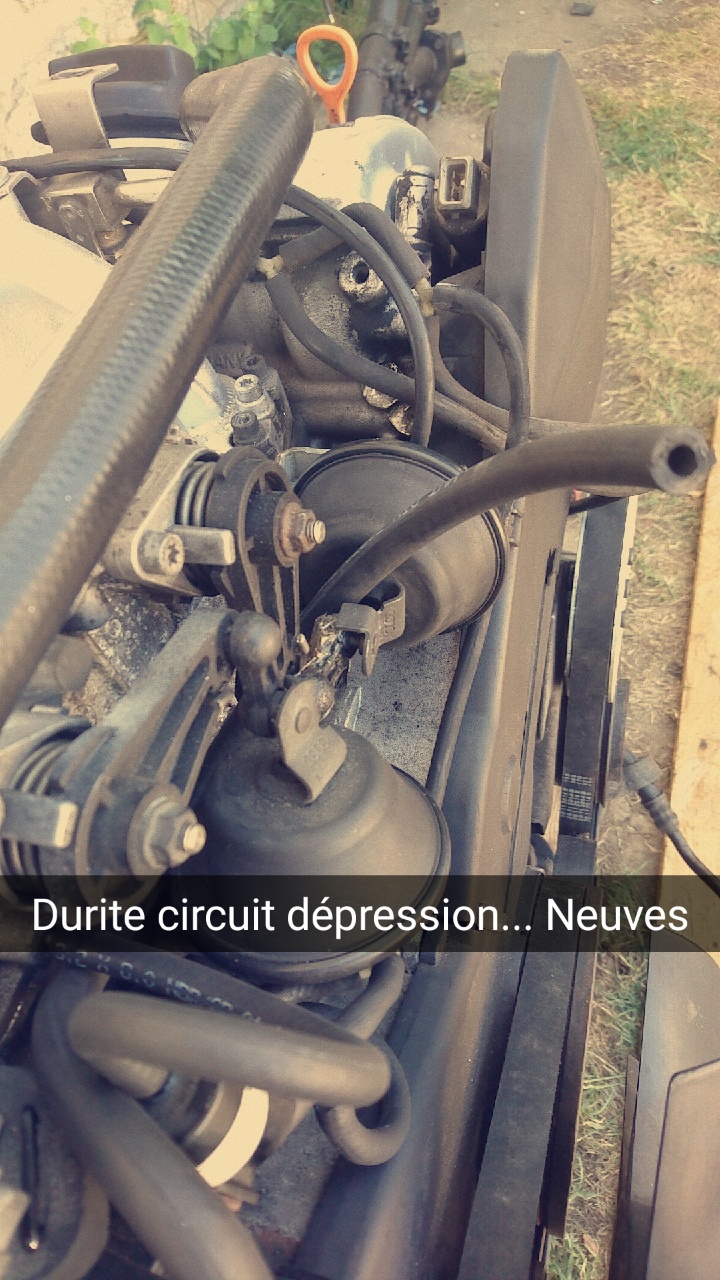 Première photos, mes belles... 🔞🔞⚠ les images qui vont suivre peuvent heurter la sensibilité des mécanicien les plus avertis... ⚠ 😱 🔞🔞 N'ayant pas de garage pour y bricoler... Je me suis vu obliger de le faire avec les moyens du bord... Je ne voulais pas encombrer l'atelier de mon ami en y laissant ma voiture sur le pont. Dernière sortie du bloc(on fais avec ce qu'on as pour caler... Nettoyage et réfection de l'admission et cache culbuteur Voilà 5jours qu'elle as son cur en dehors. J'attends le retour de ma BVA. Pour le remonter.. Mon faisceau elec es tout repéré avec du scotch de carrossier 😀 -