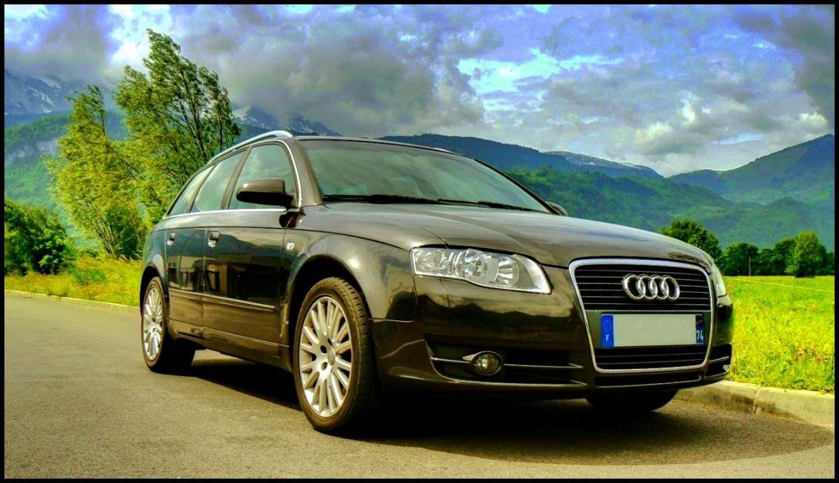 Bonjour à toutes et tous, Je m'appelle Jean-Marc, j'ai 43 ans et je vis en Haute-Savoie, au pied du Mont Blanc. Je suis l'heureux possesseur d'une Audi (Evidemment !) A4 Avant "Ambition Luxe" 2.0l TDI 170 de 2007. Elle affiche 130 000 km au compteur, elle et moi, sommes très complices :amis: sans que jamais nous n'ayons eu de différents. Elle sent bon le cuir, cela dit sans aucun fétichisme ! Que vous dire de plus ? Je travaille dans un cabinet d'architecture à Megève. Je serais ravi de faire connaissance avec d'autres "Audistes" et si vous voulez en savoir plus sur elle ou moi, faites moi signe ! Aller, une photo de mon auto rien que pour vous ! Au plaisir...