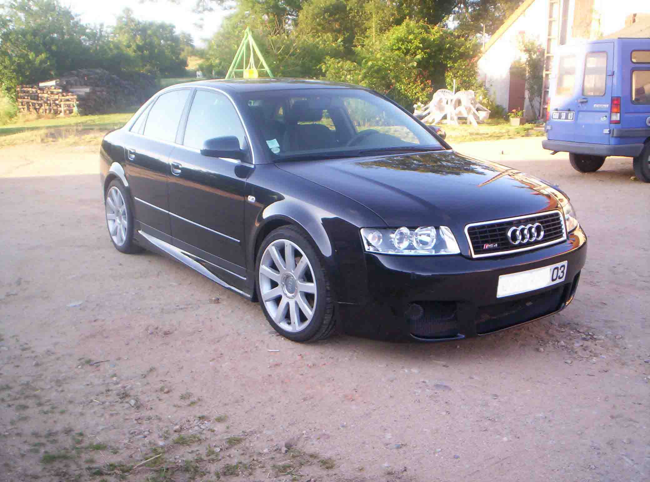 Salut! Bon je me decide enfin a vous montrer mon bébé... pour les jets de pierres,attendez un peu s'il vous plait audi a4 2001 tdi 130 cv kit complet (jupe avant,bas de caisse et rajout arriere,j'hesite encore pour le becquet arriere de s4 qui casserai a profit un peu la ligne) jantes rs4 en 18" et plein d'autre bonne chose sorry au puriste pour le sigle rs4 mais je trouve que le rouge tranche bien avec le noir nacre mais vu les reaction je pense qu'il ne saurait tarder a partir... j'ai d'autre photo du bébé mais etant en bas debit(56k )si une ame charitable veut bien me les uploader... audicalement LUDO03 ps:vos impressions?