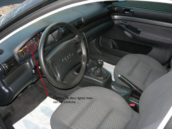 Bonjour à tous !! Bon, comme certain le savent déjà, j'ai une vieille audi 1.9 TDI de 1997 et depuis peu je me pose une question: "Ai je un indicateur de température extérieure sur mon tableau de bord ??" En effet, j'ai un collègue qui a la même voiture mais plus récente (1998) et lui il a effectivement cet indicateur là ou moi je n'ai rien d'affiché ??!! Est ce équipé d'origine ou est ce une option ? Si c'est d'origine, l'affichage doit être grillé (je l'ai achetée comme ça et je savais pas... ) J'ai joins la photo pour que vous puissiez vous situer... merci. -