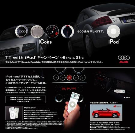 16. Tout le monde n'a pas les moyens de s'acheter une Audi TT, surtout quand ce modèle est vendu exclusivement en Asie ! Il s'agit ici d'une des premières voitures venant en série avec un iPod Nano dans la boite à gants et tout l'équipement sonore qui va avec ! Il vous faudra juste l'acheter entre le 5 janvier et le 31 mars 2006 au Japon. Alors qu'attendez-vous ?