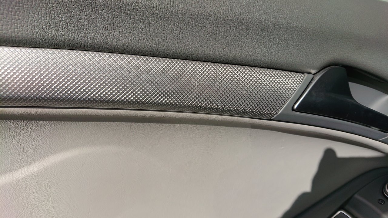 J'ai deux petits défauts à l'intérieur qui me gâche un peu le plaisir car ma voiture est vraiment comme neuve à part ça Une tâche noire sur le dessus du cache central du volant. J'ai demandé chez Audi, impossible à commander seul, il faut acheter le volant complet Des griffes sur la baguette de porte conducteur, sûrement l'alliance du premier proprio. 150€ chez Audi, ça fait cher le bout de plastique. Je regarde de temps en temps les annonces sur LBC mais ça me semble très compliqué à trouver ! La version "alu" j'en vois passer de temps en temps, mais pas le modèle qu'il me faut, à savoir "Trigon"... Si jamais quelqu'un a ça dans un coin -