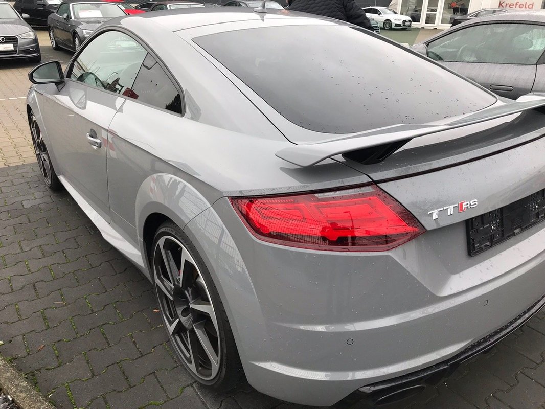 Bonjour à tous, Après un premier post dans cette section il y a 3 ans où j'annonçais mon passage de la S3 SB au TTS, j'ouvre celui-ci. Ma S4 Avant étant vendue (enfin) j'étais à la recherche d'un TT RS que j'aurais voulu commander neuf en UK mais c'est impossible depuis de longs mois. Je me suis donc rabattu sur un modèle récent que j'ai trouvé dans une concession Audi en Allemagne : un TT RS occasion + de Février 2018 avec 17 000kms et les options suivantes : - jantes 20" noir brillant / alu - gris Nardo - cuir nappa noir surpiqures rouges - pack RS design intérieur rouge - sièges chauffants électriques - pack cuir étendu - pack style noir brillant extérieur - matrix leds - magnetic ride - B&0 - radio DAB - Home Link - rétros ext jour / nuit rabattables - accès confort - pack rangement - audi phone box - side assist - hold assist - caméra de recul - Vmax à 280 km/h - échappement sport - Vitres arrières teintées - étriers peints en rouge - extension de garantie Audi jusque février 2023 ou 100 000 kms J'aurais souhaité un modèle avec moins de kilomètres, le carbone intérieur et les feux oleds à l'arrière , mais difficile de trouver la config parfaite en occasion et puis le prix auquel j'ai pu l'obtenir ainsi que la garantie de 5 ans m'ont décidés . Livraison dans 15 jours logiquement. A suivre,