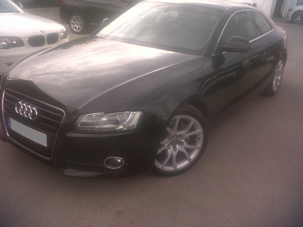 4. Bonjour à tous. Je réitère mon message de présentation, que j'étoffe légèrement, dans la rubrique consacrée à l'audi A5. Je me présente. Je me prénomme Bernard. Je suis des Bouches du Rhône et très heureux propriétaire d'une audi A5 3.0 tdi quattro ambition luxe de mi 2008 que j'ai acquis d'occasion au mois de mars de cette année. Il s'agit d'une première main noir phantom de Mai 2008. Lors de son achat, elle totalisait 60.000 km. Elle en a plus de 80.0000 aujourd'hui et la satisfaction de la démarrer tous les matins est resté intact. Il s'agit de ma première audi, privilégiant jusqu'à présent la marque à l'étoile. Ce modèle m'a littéralement séduit par sa ligne et son "regard" exceptionnel, les feux led diurnes contribuant tout particulièrement à la magie qui se dégage de ce modèle.Une ligne, par dessus le marché, à couper le souffle... Un amalgame de modernité et certaine courbes relatent un certain "classicisme" , qui, notamment, me font qualifier ce véhicule d'exception. J'ai opté pour le fabuleux V6 tdi 3.0 quattro et ma première stupéfaction (roulant jusqu'à présent V8 essence Mercedes) a été la douceur et la sonorité discrète du moteur et également ses prestations en reprise, couple et réaction. Une flatterie pour les oreilles, tout en restant dans le domaine de la sobriété. Place à la seule photo que je peux poster pour l'instant eu égard au format... Je ferais mieux la prochaine fois...promis! :sweat: :sweat: La seule modification envisagée se situe au niveau des jantes. J'hésite entre des Y en 19 pouces ou des RS4 en 20 pouces... Bien évidemment me direz vous! Au plaisir de vous croiser sur nos routes et au plaisir de lire, vos avis, vos suggestions et vos commentaires. Bien cordialement