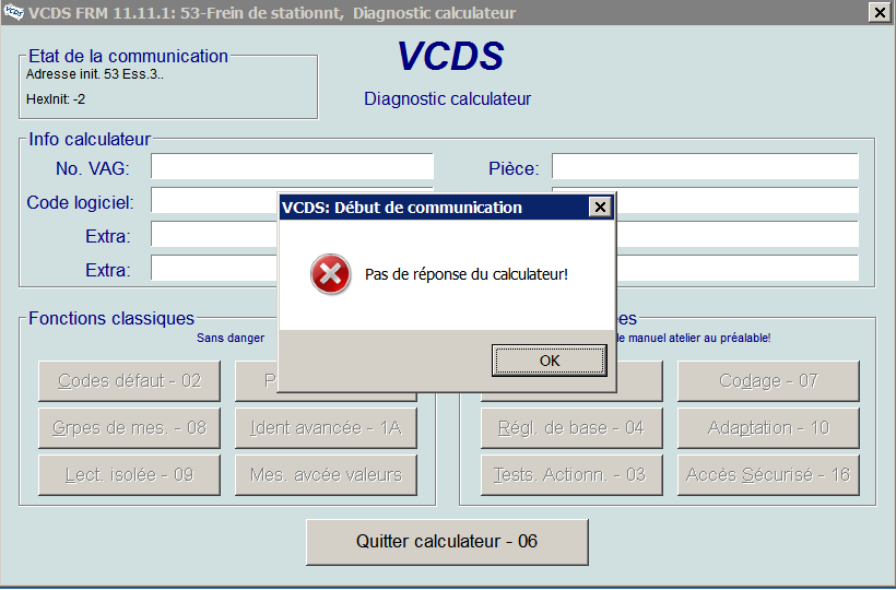 19. Bonjour, Excellent tuto de Giovanni 76, bravo,merci à lui. Ce tuto il m'a été tres utile pour les freins AV. Je vais prochainement remplacer les plaquettes des freins AR et en lisant le Tuto de Giovanni 76 et la doc du Vag-com suivant le lien posté par Tomclear, il apparait que pour desserrer les freins AR le code à rentrer dans le vag-com est différent, - Giovanni76 entre le code 5 pour desserrer. - Tomclear (Doc Vag-com) entre le code 7 pour desserrer. Ai-je mal mal compris le mode opératoire, ou alors le N° de code est fonction de la version du Vag-com ? Merci pour les retours Cdlt JLB