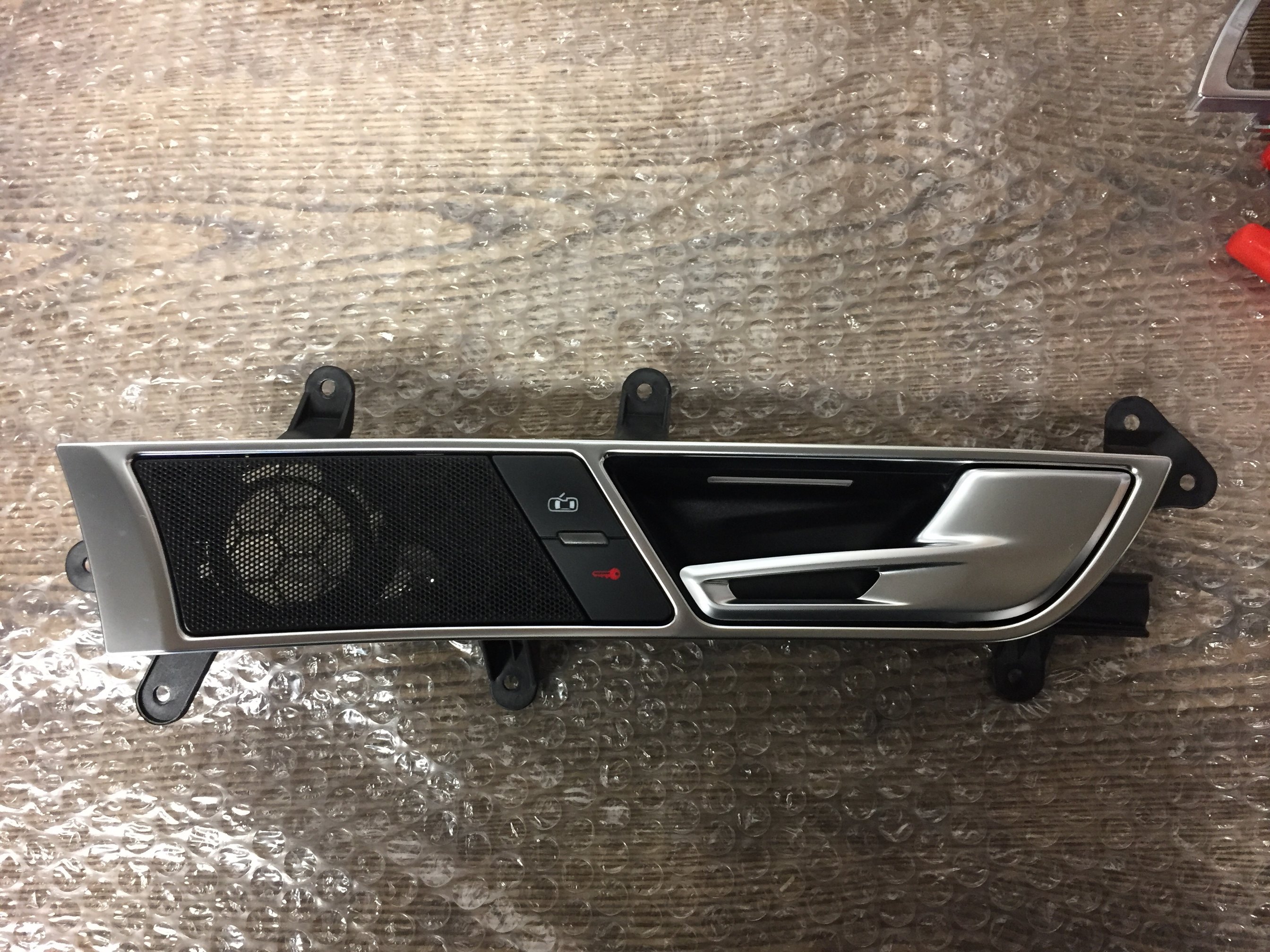 Je vous mets également quelques photos de la modification de la poignée passager sur laquelle j’ai ajouté un bouton de verrouillage et mis une poignée de RS6 en attendant le montage avec la modification du câblage.