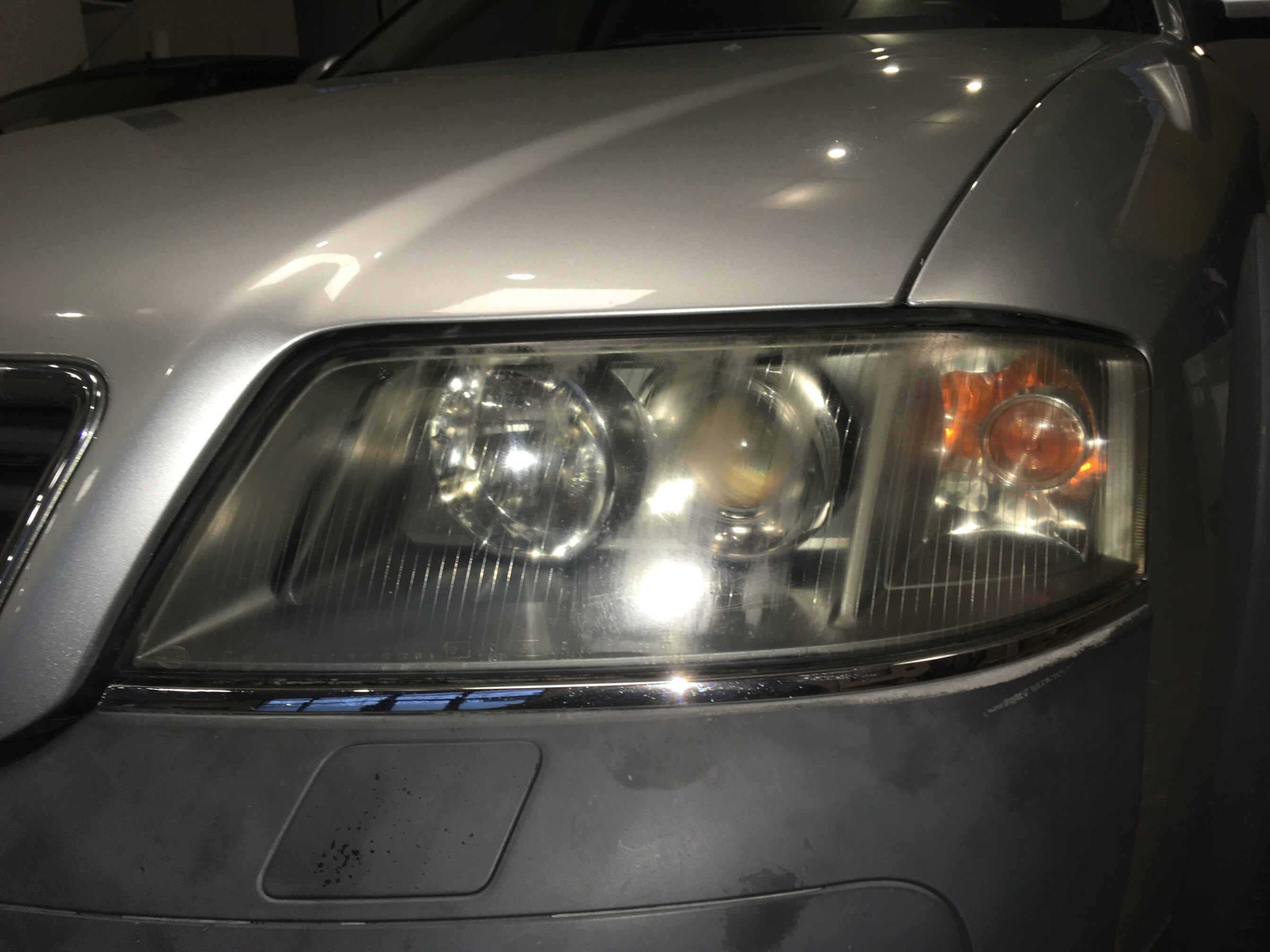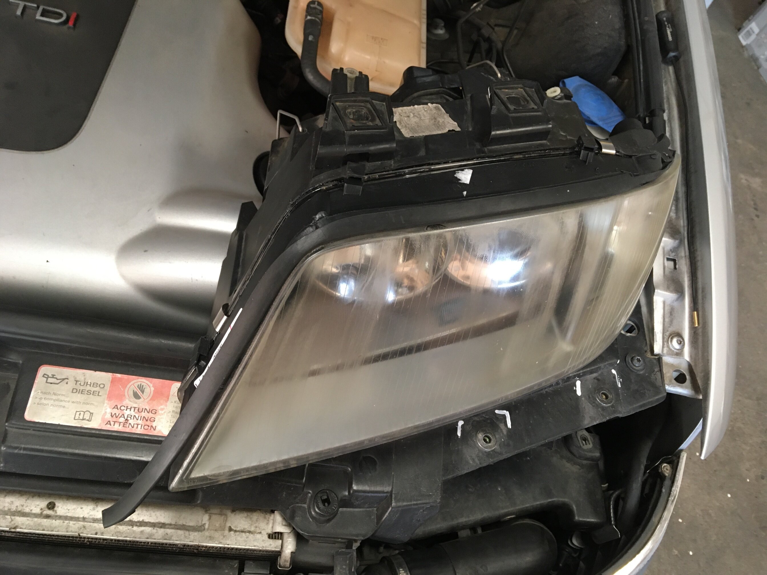 Petite mauvaise surprise en rentrant de laver la voiture en prévision du démontage des PC : l'optique avant gauche pleine d'eau.