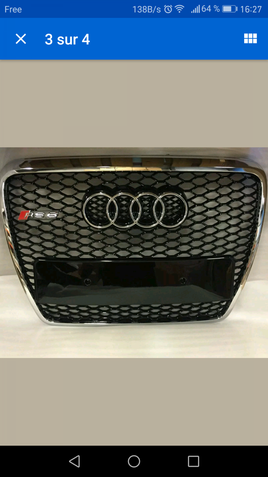 Sinon je recherche une calandre S6 mais les prix on drôlement monté car j'ai appelle audi et la calandre et maintenant a 423 euros .