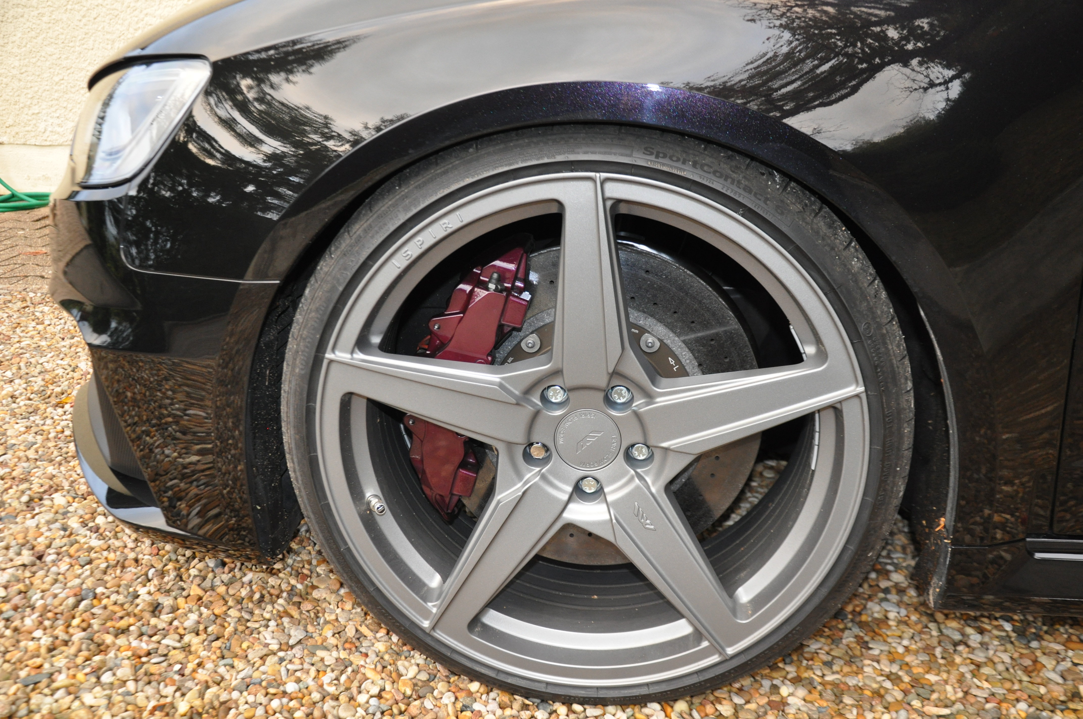 L'avantage de la couleur alu et de faire ressortir la finesse des jantes et leur coté concave , mais par contre ça va m'obligé si je laisse comme ça , de remettre quelques touches alu , le sigle RS3 original avant , le contour de calandre , le contour de vitre et ça à l'arrière .