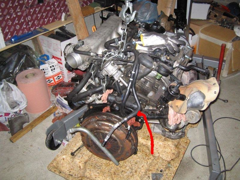 On va tout d'abord enlever la courroie d'accessoire. Première opération, débrancher le tube qui va du turbo au premier échangeur. Bien bouchez les deux cotés avec un chiffon ou papier toilettes en boules pour éviter que quoi que se soit tombe dedans...